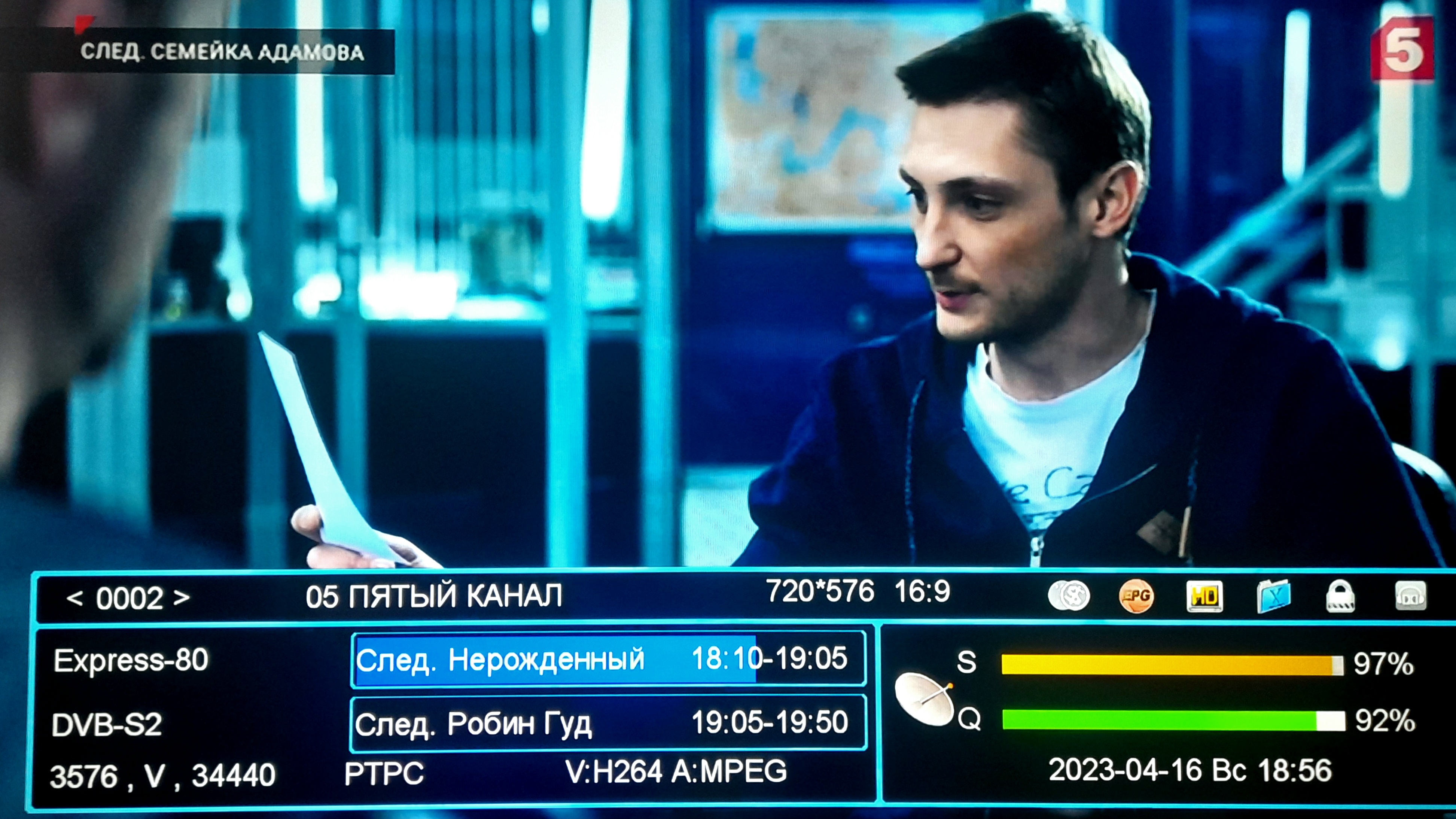 Cband,принял сигнал з спутника на конвертор Cband с линейной поляризацией 1мультиплекс росс.каналов.антенна сетка KTI(USA)250cm.(Западная Украина).